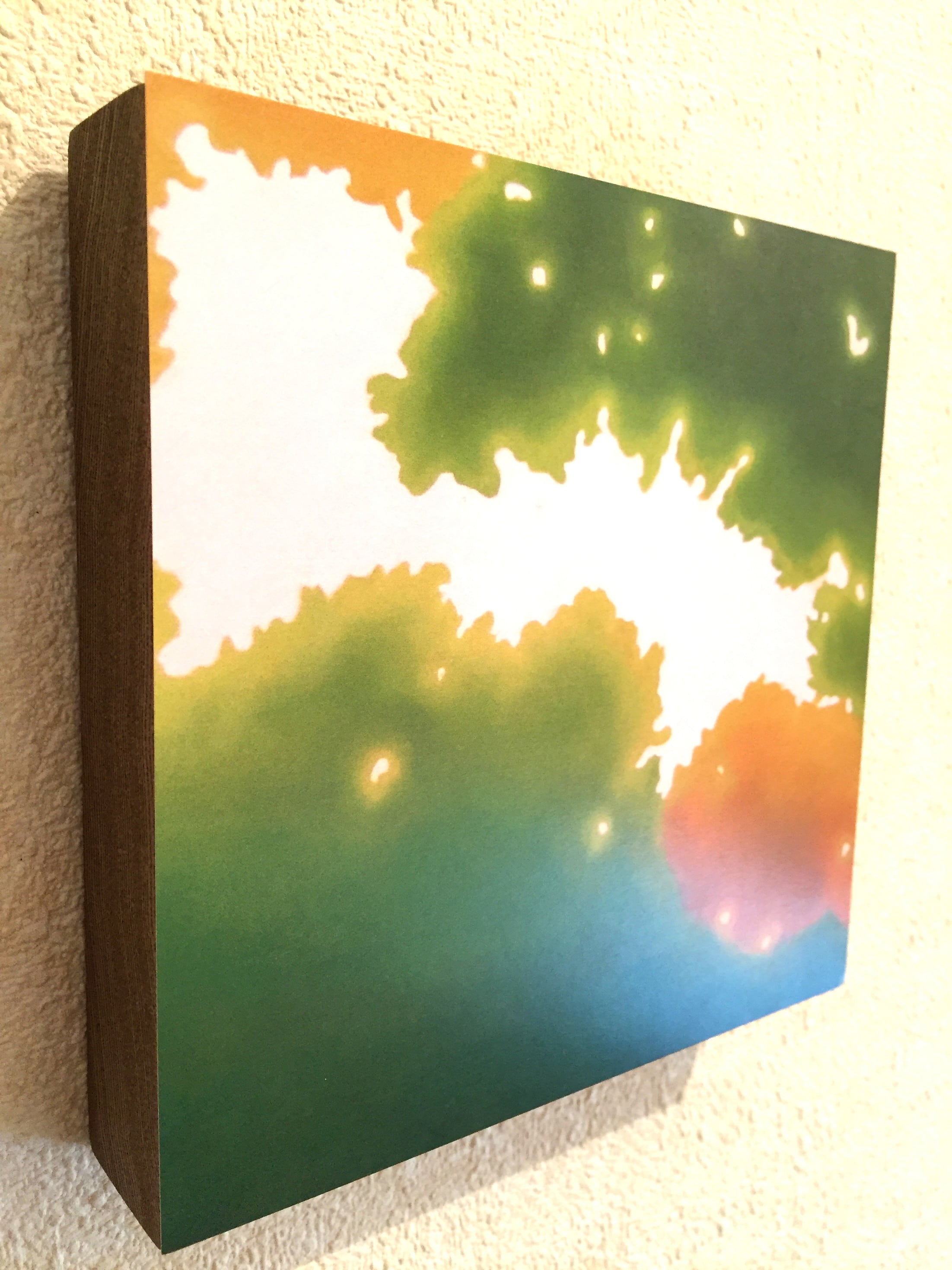 絵画 絵 ピクチャー 縁起画 モダン シェアハウス アートパネル アート art 14cm×14cm 一人暮らし 送料無料 インテリア 雑貨 壁掛け 置物 おしゃれ こもれび 木漏れ日 自然 風景 ロココロ 画家 : 馬見塚喜康 作品 : こもれび-Ⅳ